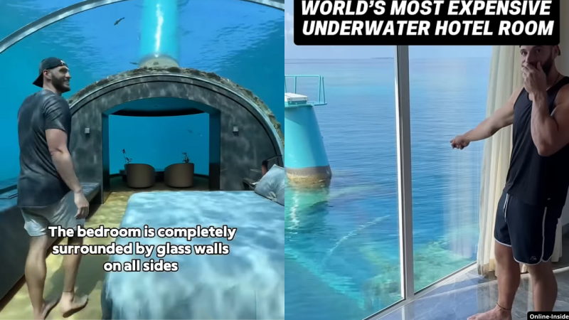 The Muraka suite in the Maldives is not a hotel room, but an experience that pushes boundaries. This underwater villa combines architectural innovation with pure luxury. Upstairs you will find an elegant living room, infinity pool and sun terrace; downstairs the magic awaits. Through a glass tunnel you go down to the bedroom, where acrylic walls completely surround you with the ocean. While you're in bed, manta rays and colorful fish float by as if you were part of the reef yourself. With a personal chef, butler and wellness team, The Muraka is more than a stay – it's a once-in-a-lifetime dream.